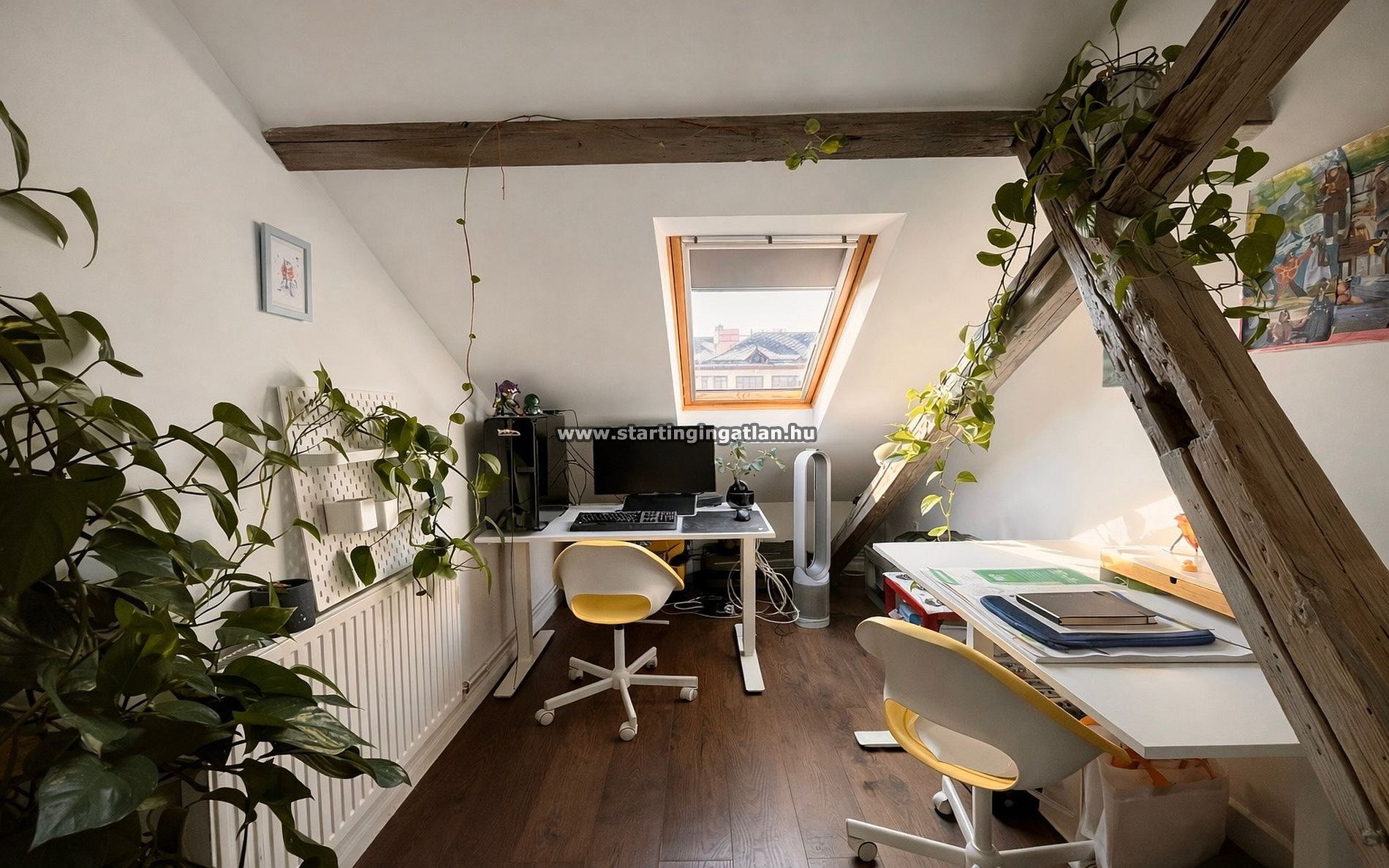A XII. kerület egyik közkedvelt, csendes utcájában, a Margaréta utcában kínálunk megvételre egy igazán különleges hangulatú, fiatalos otthont. A négy emeletes, 17 lakásos, rendezett társasház tetőterében 1992-ben kialakított, 60 négyzetméteres lakás amerikai konyhás nappalival és két külön nyíló hálószobával rendelkezik, így elosztása rendkívül praktikus és jól élhető. Minden helyiség ablakos, a terek világosak és barátságosak, a kétfrontos tájolásnak köszönhetően pedig egész nap kellemes fényviszonyok jellemzik az ingatlant. Az egyik oldal északi, a másik déli fekvésű, a negyedik emeleti elhelyezkedésből adódóan mindkét irányba gyönyörű, panorámás kilátás nyílik.